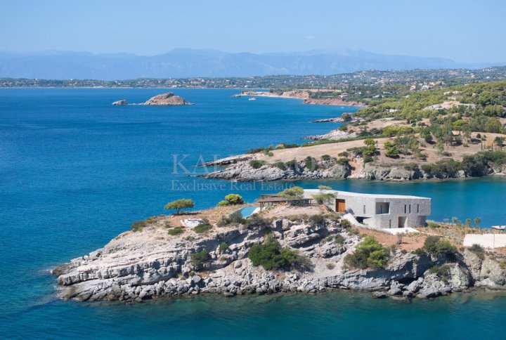 The Villas is an exceptional retreat that redefines luxury and privacy set on a private peninsula overlooking the Argo–Saronic Gulf, . Spanning a total plot of 12.700 sqm, the two villas share a harmonious architectural identity yet remain entirely independent, offering flexibility for guests seeking exclusive use or combined accommodation for up to 16 guests plus one staff room each. Designed to blur the boundaries between indoor and outdoor living, both residences feature expansive glass façades, natural materials, and earthy, timeless tones that echo the surrounding landscape. Each villa is surrounded by lush gardens, shaded terraces, and its own infinity pool with Jacuzzi, all overlooking the deep blue of the Aegean Sea. In the plot there is private beach, private jetty and private tennis court.